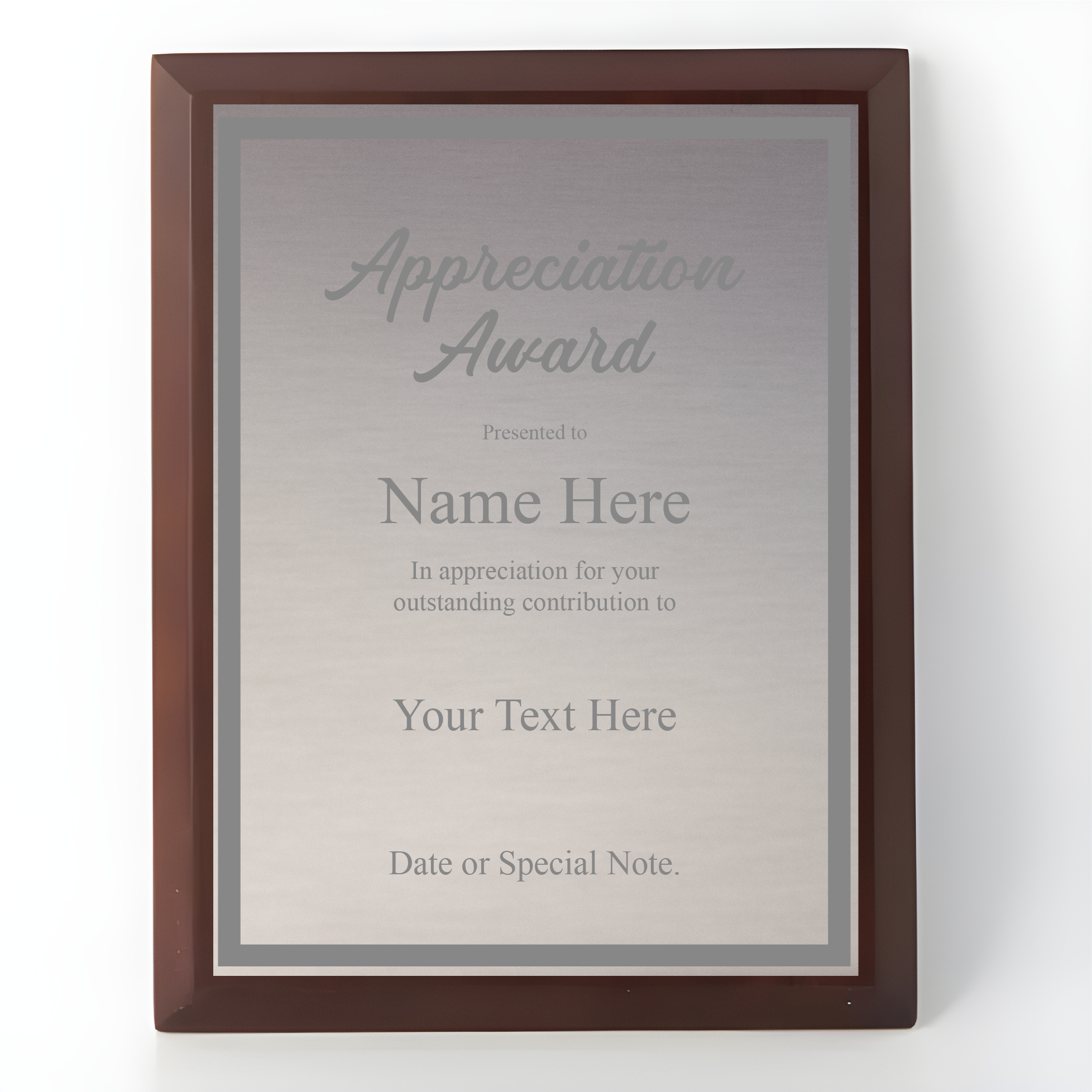 Concevez votre propre plaque personnalisée en brun mat avec grain de bois 8" x 10"