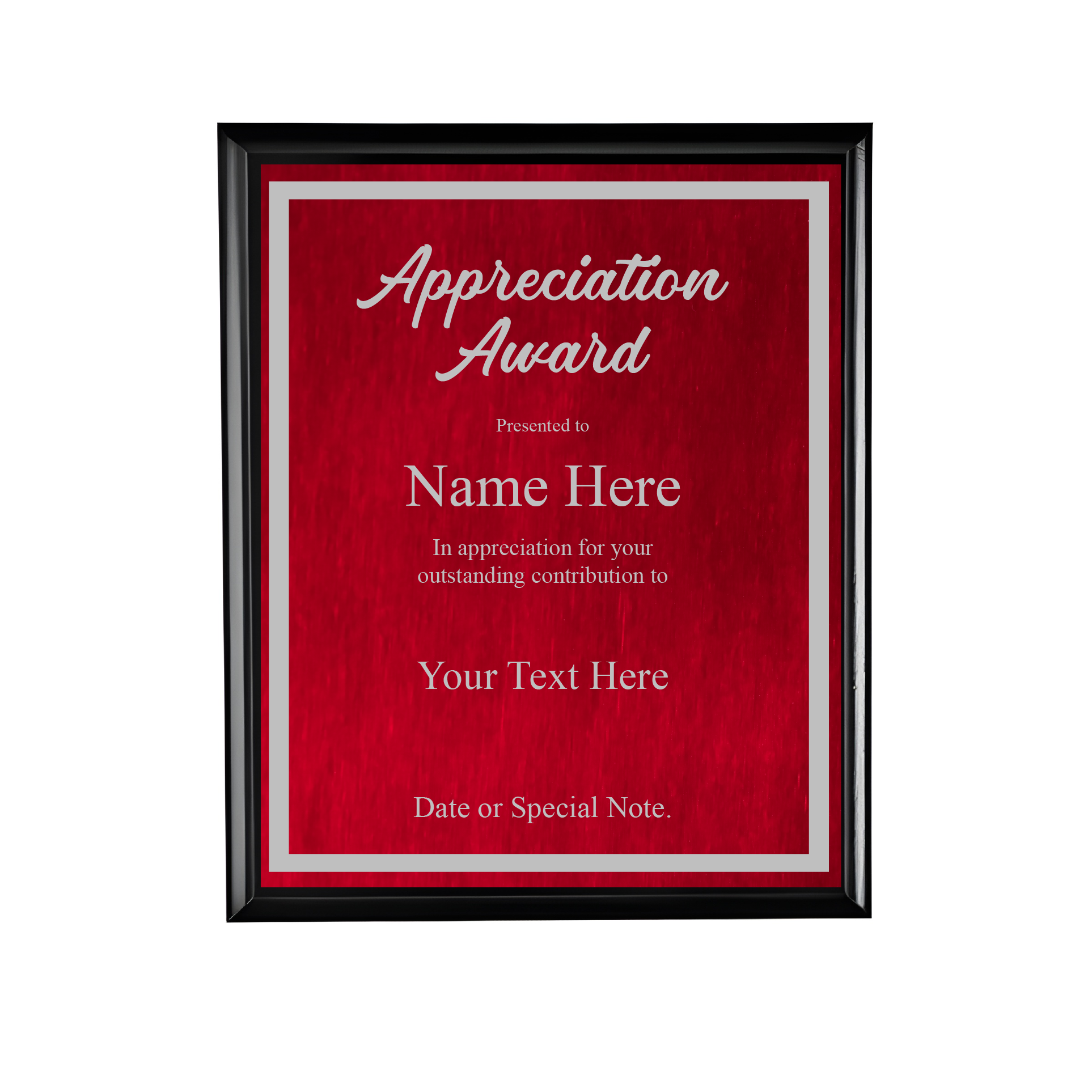 Ne vous souciez pas des compétences en matière de conception : nous sommes là pour vous aider ! Contactez une personne réelle par téléphone ou par message direct pour bénéficier de notre service de conception gratuit. Nous travaillerons avec vous pour créer la plaque parfaite qui reflète votre réussite exactement comme vous l'imaginez.