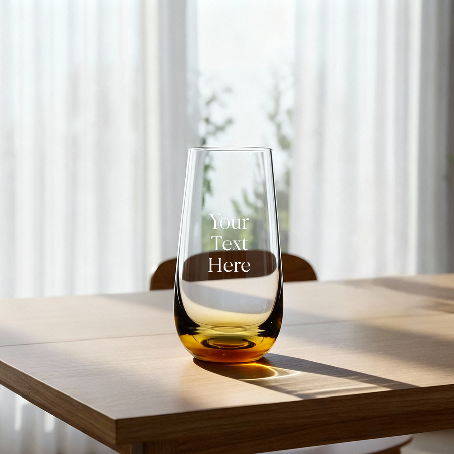 Elevate your entertaining with our Personalized Amber Highball Glass, expertly crafted from premium lead-free crystal. Each glass features a warm amber-colored stem that smoothly fades into the cup, creating a subtle yellow tint that adds a sophisticated, modern accent to any table or home bar.