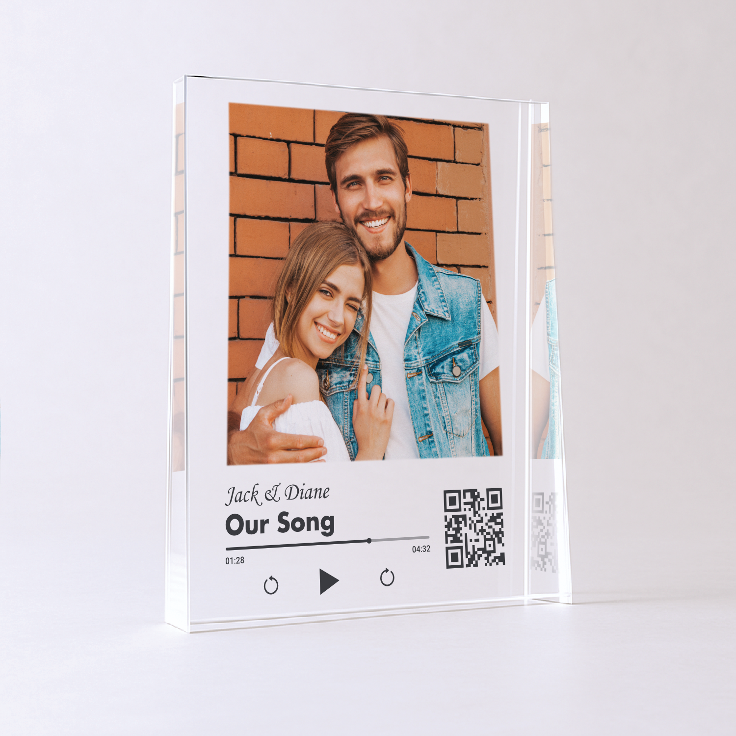 Forget the wilting flowers and melting chocolates—this glass wedge award is the Valentine's gift that actually lasts. Personalize it with your favorite couple's photo and the song that defines your love story. We'll even embed a QR code that plays your tune whenever someone picks it up. It's a keepsake that celebrates your relationship in a way that's uniquely, unmistakably yours. Perfect for anniversaries, engagements, or just because you want to immortalize your favorite moments together.