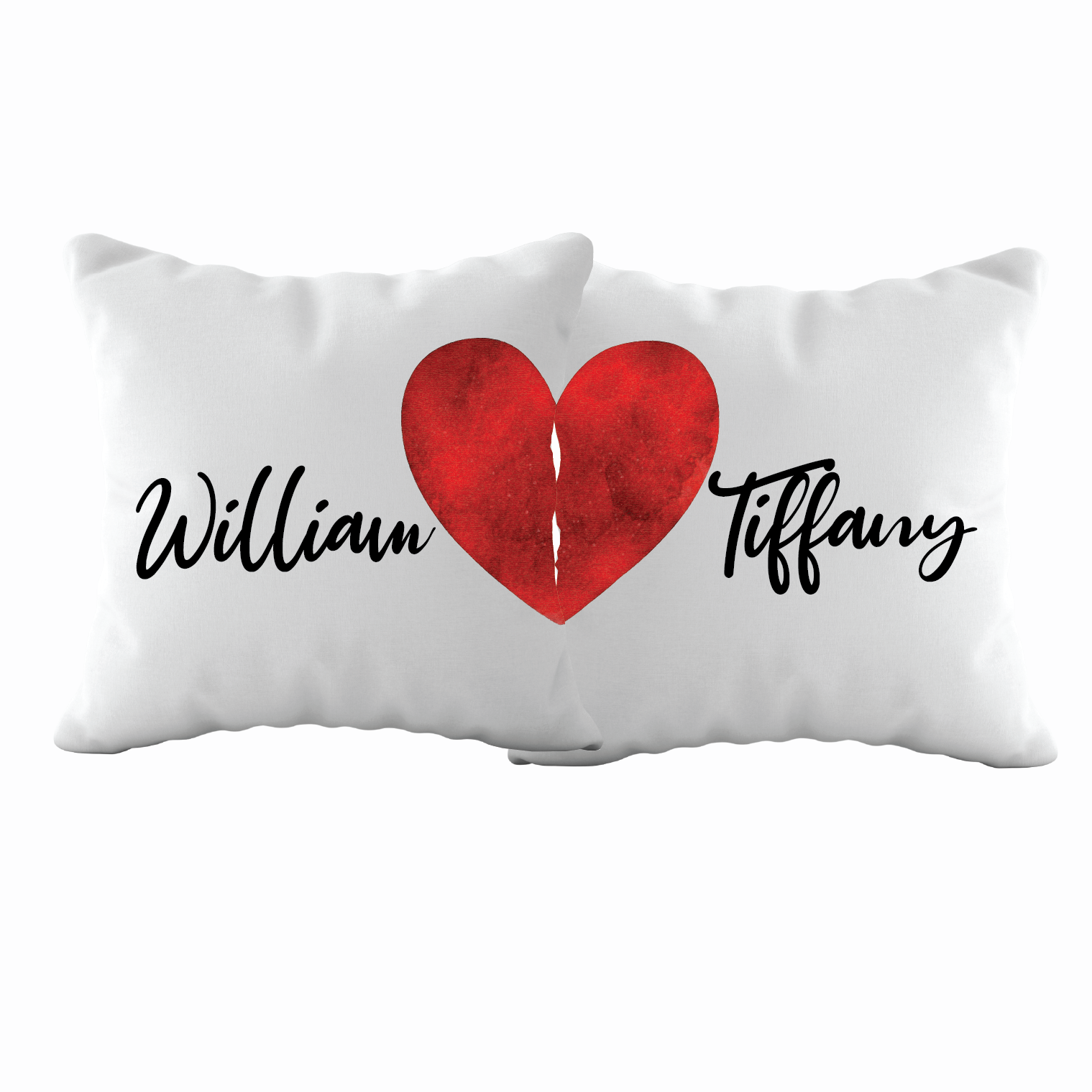 Celebrate your connection with this charming pillow set featuring a split heart design—one half on each pillow. Personalize both pillows with custom names to create a meaningful keepsake for Valentine's Day or any occasion. Beyond romance, these versatile pieces enhance your living room décor year-round, making them ideal for anniversaries, birthdays, or simply expressing affection. Crafted for comfort and style, they transform any space into a warm, inviting retreat that tells your unique story.