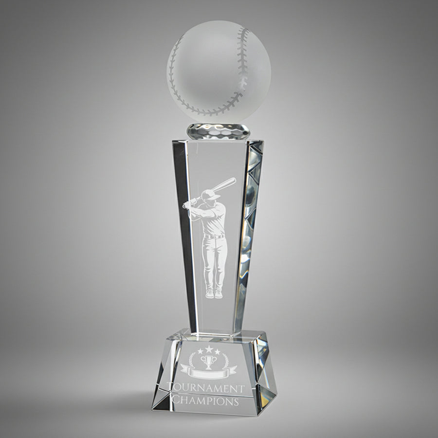 Celebrate baseball achievements with the Baseball Vapour Glass Award, measuring 8 5/8" and presented in a stylish gift box. Perfect for corporate sports events, baseball tournaments, and employee recognition, this elegant glass trophy is ideal for custom engraved baseball awards, corporate sports recognition, and team achievement trophies. Its sleek design makes it a standout choice for honoring players and champions.