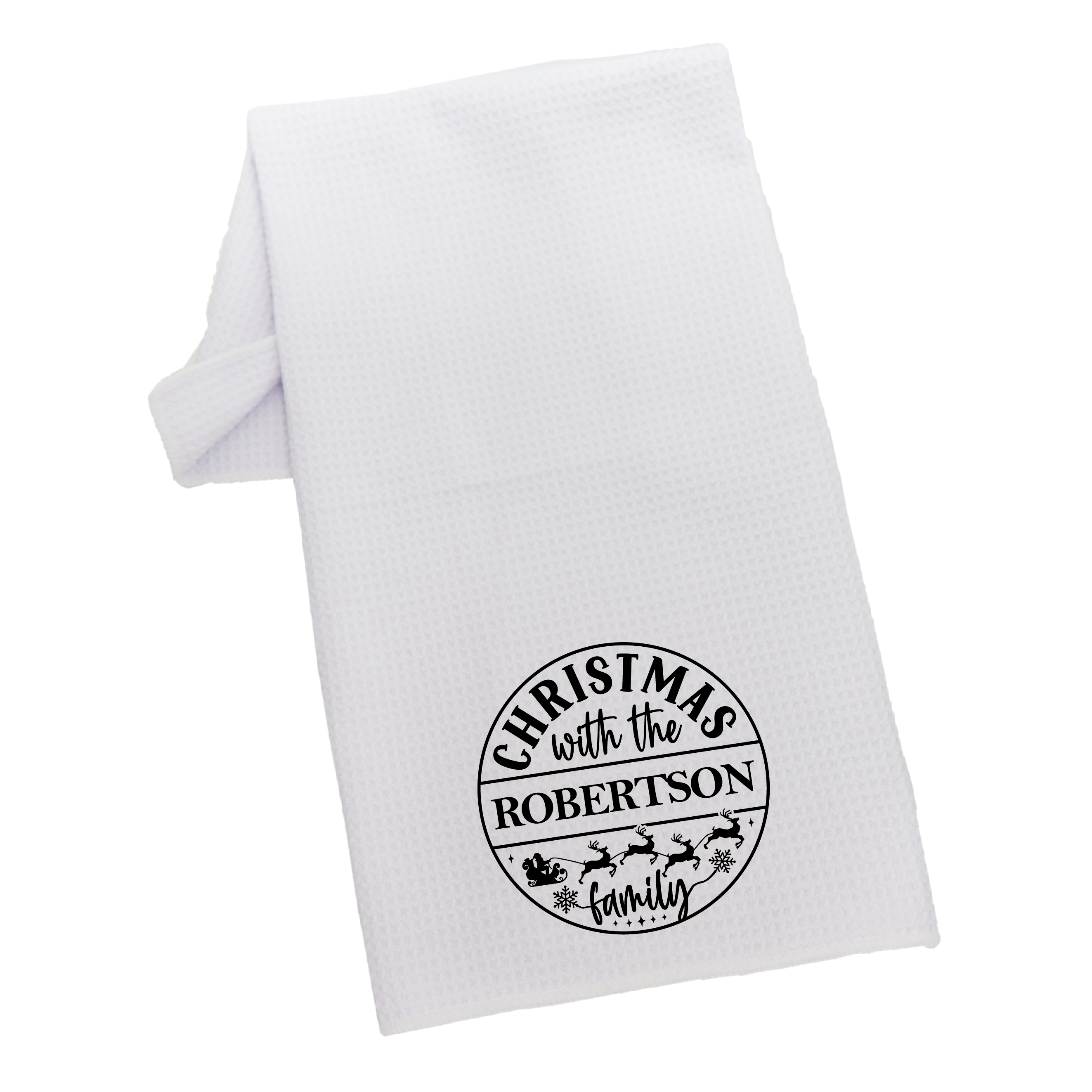 Personalized Christmas Family Name Dish Towel | Custom Printed Waffle Weave Kitchen Towel | Holiday Kitchen Décor