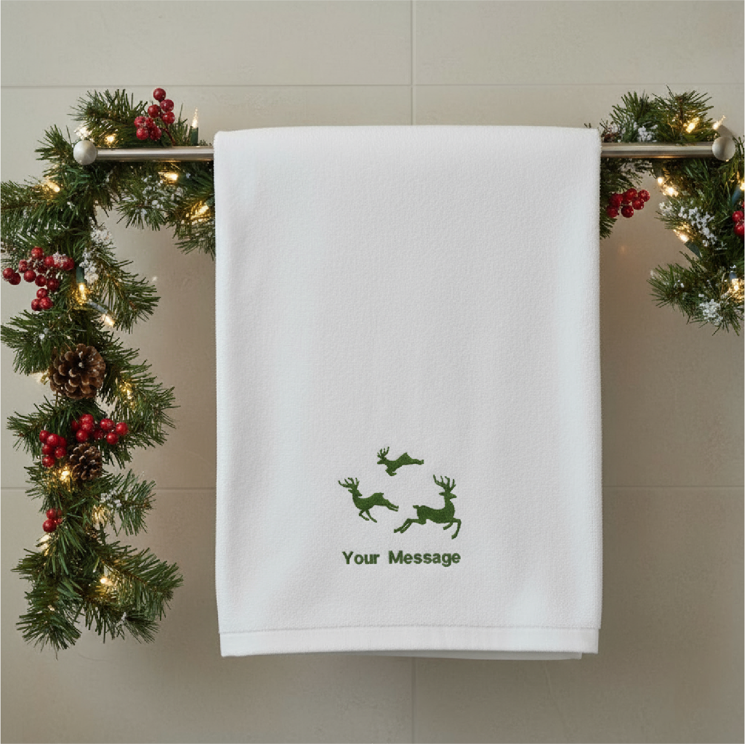 Christmas Reindeer Bath Towel | Personalized Embroidered Holiday Towel | Custom Cotton Gift