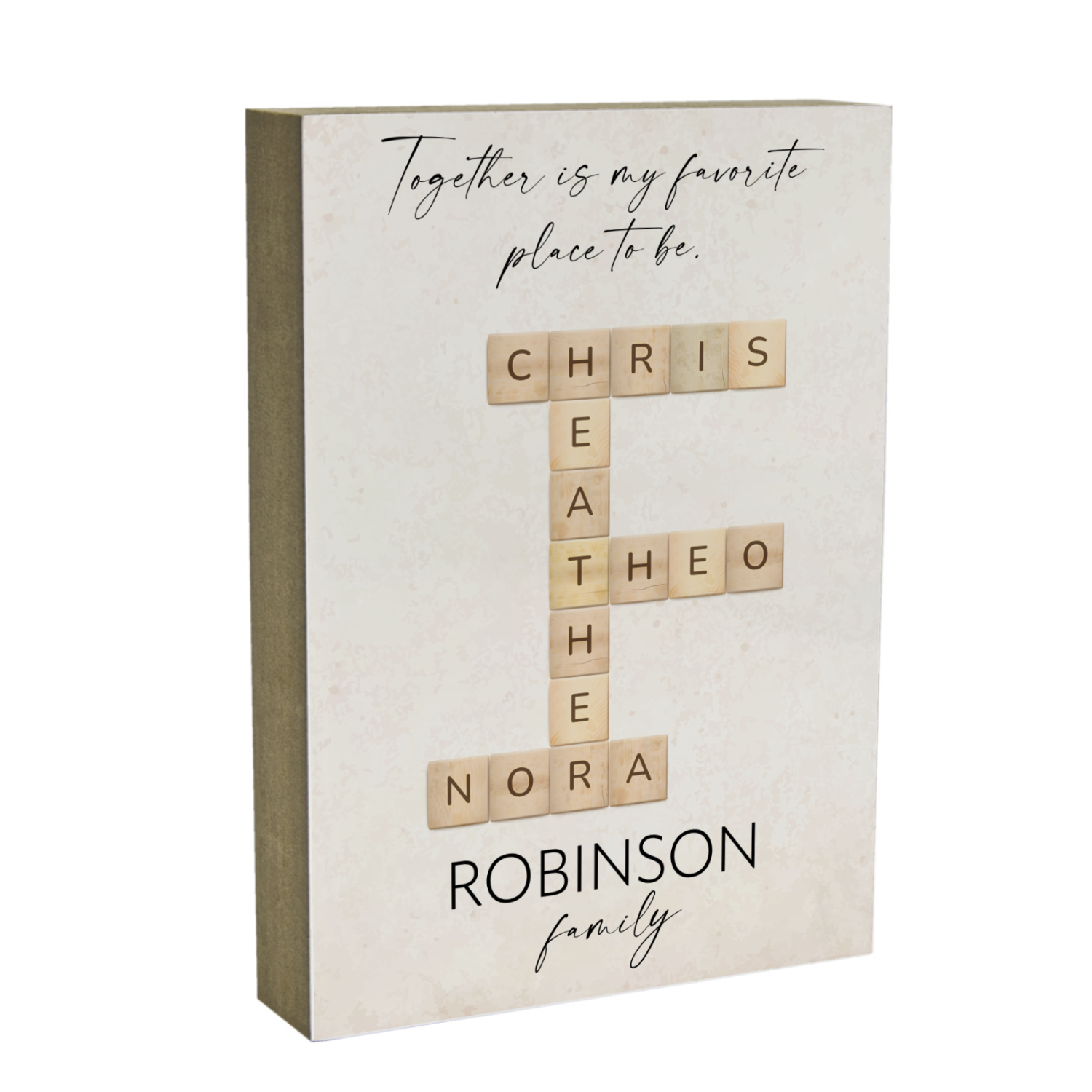 Create a one-of-a-kind keepsake with our 5x7 personalized family word puzzle photo block! Customize with family first names arranged like a fun crossword, add your favorite photo, design, or inspirational message. Perfect for decorating any room, and makes a thoughtful gift for birthdays, holidays, anniversaries, or new home celebrations. Available in portrait or landscape orientation for your home or office!