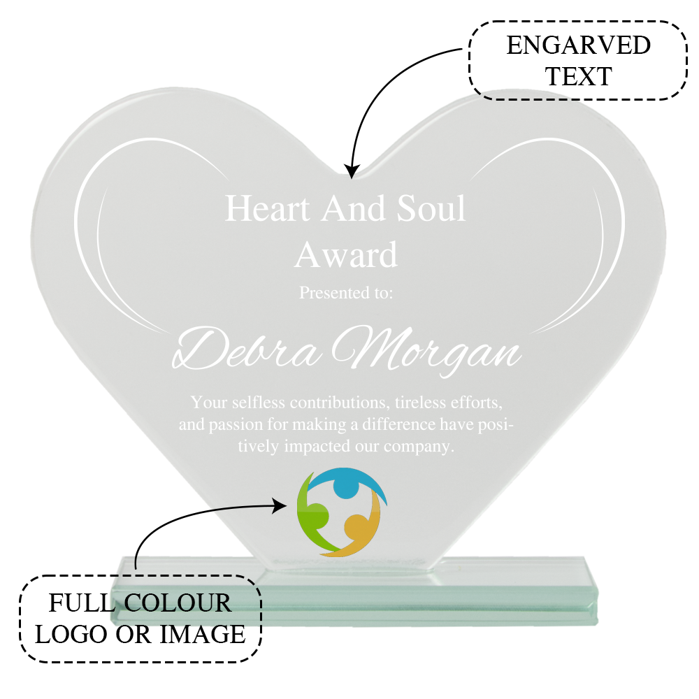 Crafted from premium glass, this trophy represents both transparency and strength. Personalization options include full-colour logo printing to showcase your brand or emblem with vivid detail, paired with precision-engraved text for names, dates, and special messages. The combination of colour and engraving ensures a professional, polished finish that highlights both identity and achievement.