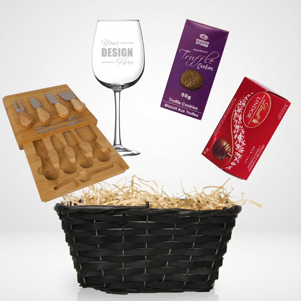 - Charming Bamboo Cheese Board & Knife Set: Paired with the basket is an adorable bamboo cheese board set includes 6 serving knives. it can also be engraved, adding an extra layer of thoughtfulness to your gift.