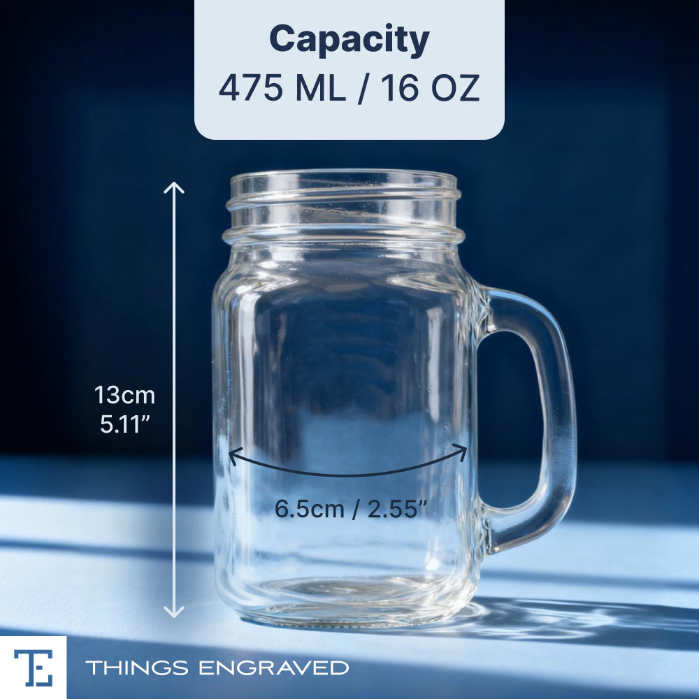 Raise a glass in style with our 16oz Mason Jar Glass with Handle, a versatile and timeless piece of drinkware. Perfect for everything from iced tea on the porch to cocktails around the campfire, this custom engraved mason jar is designed to make every sip more memorable.
