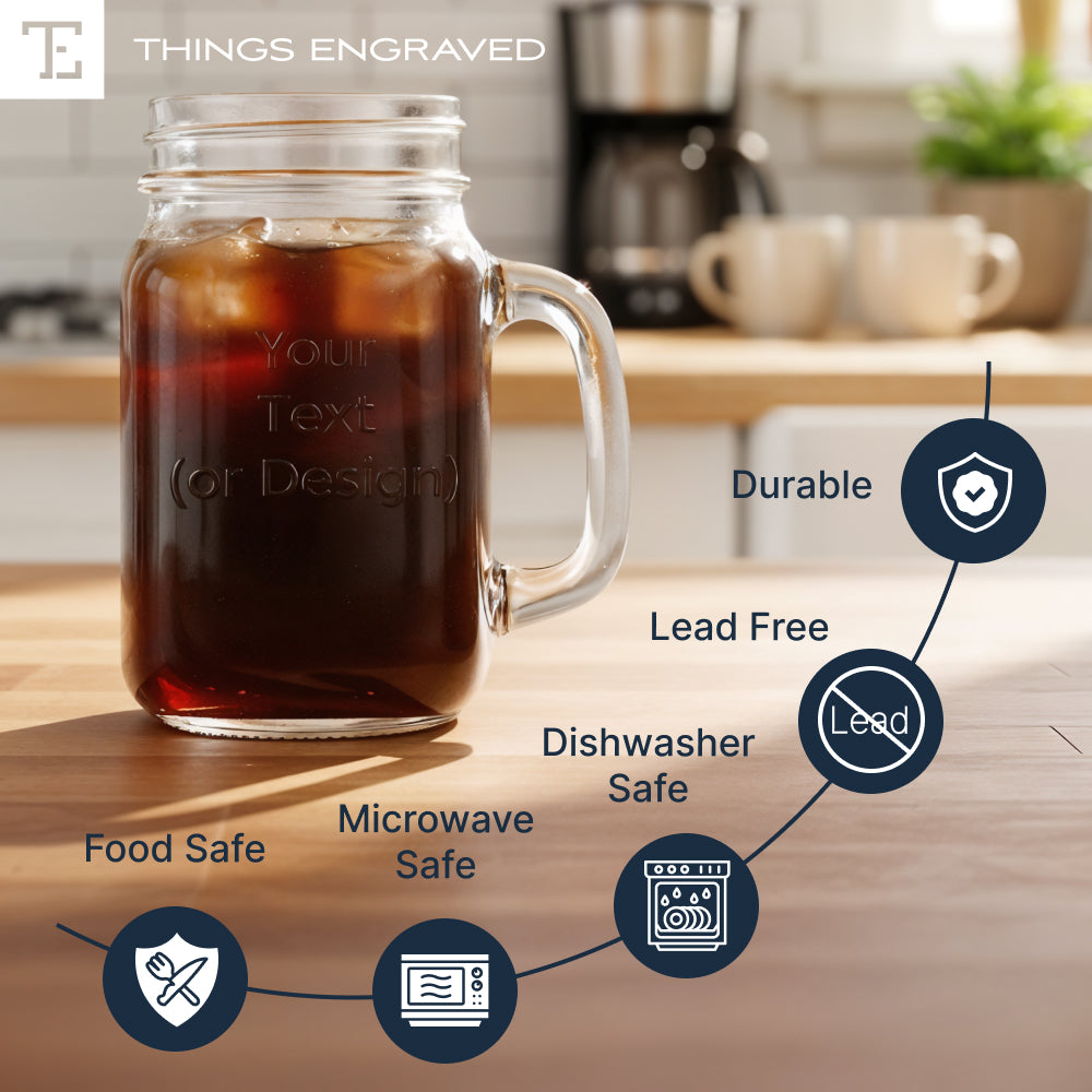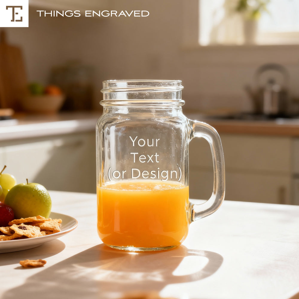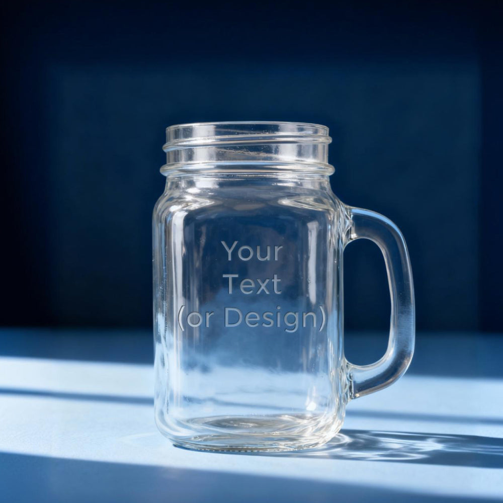 Custom Engraved Mason Jar Glass with Handle – Personalized 16oz Rustic Drinkware Gift