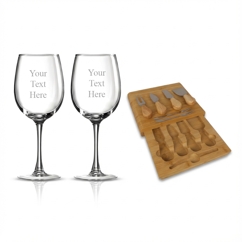 If you're attending a dinner party over the holidays, this set of 2 custom wine glasses paired with a personalized bamboo cheese board & knife set are the perfect gift. Add a nice message, or simply ask us to add a beautiful holiday design. This really levels up just bringing a bottle of their favourite wine!