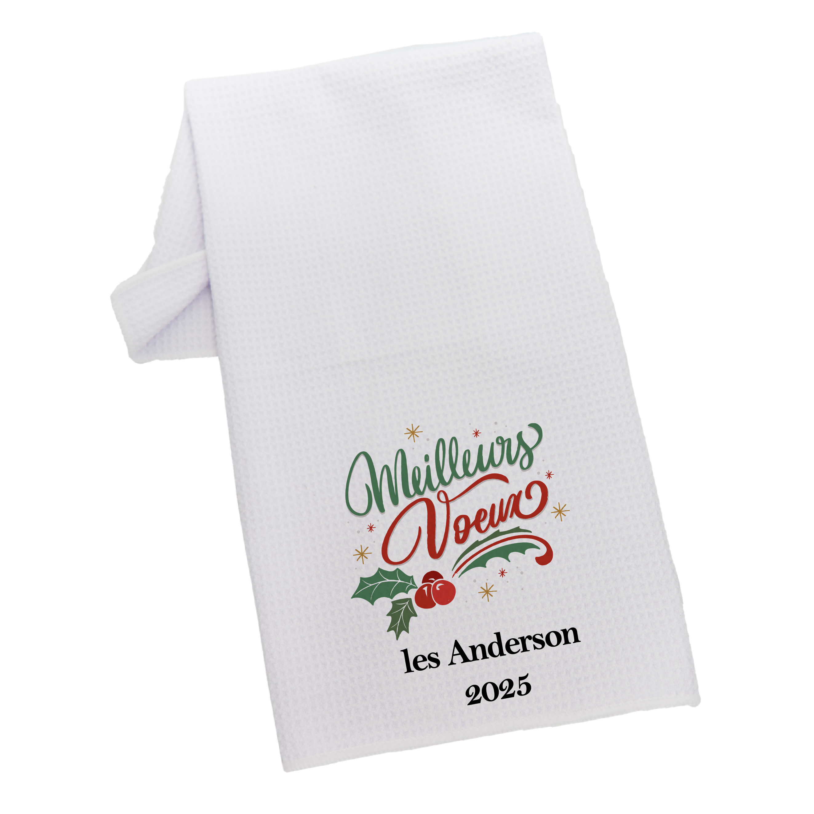 Personalized “Meilleurs Voeux” Dish Towel | Custom Printed Waffle Weave Kitchen Towel | Holiday Kitchen Gift