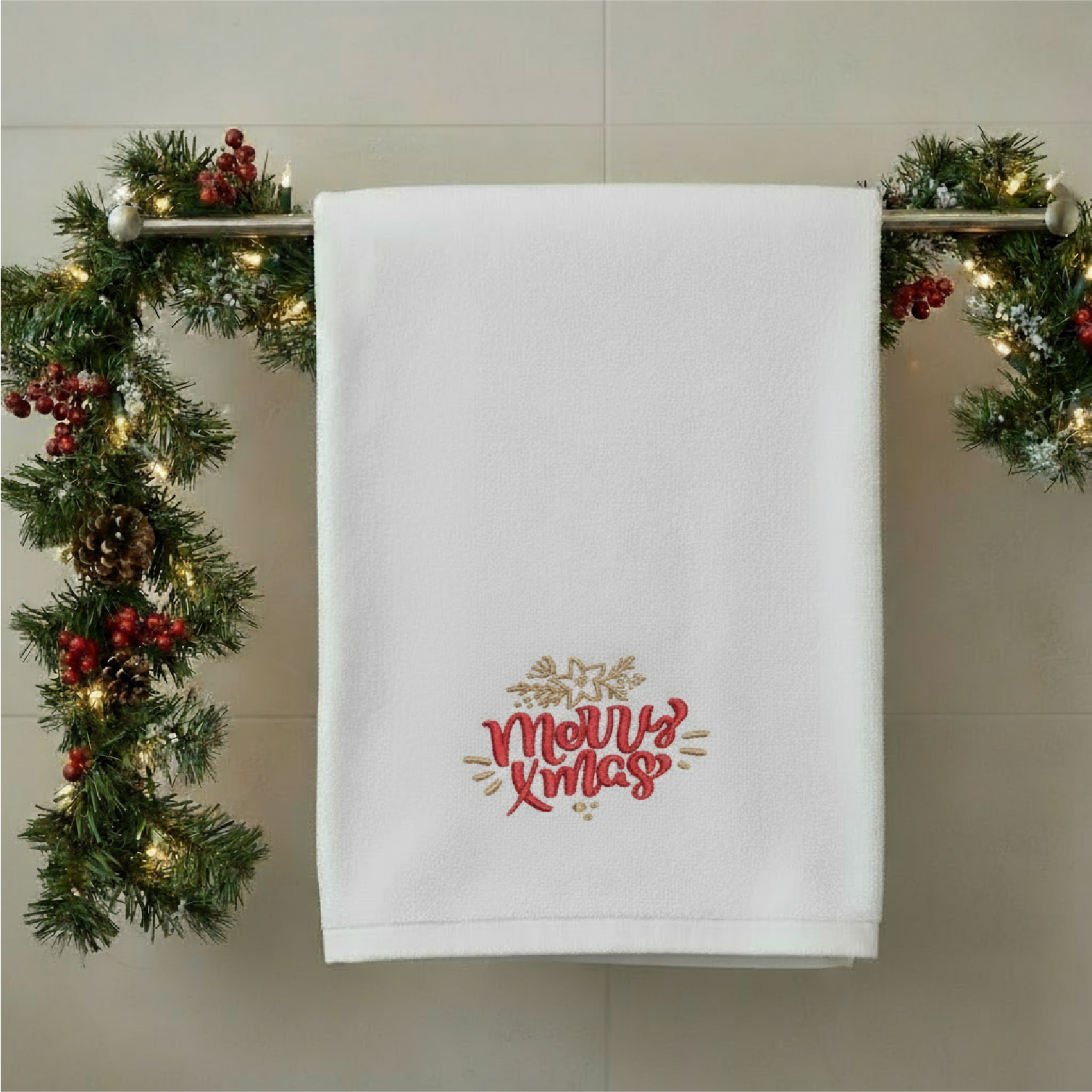 Merry Christmas Bath Towel | Personalized Embroidered Holiday Towel | Custom Cotton Gift