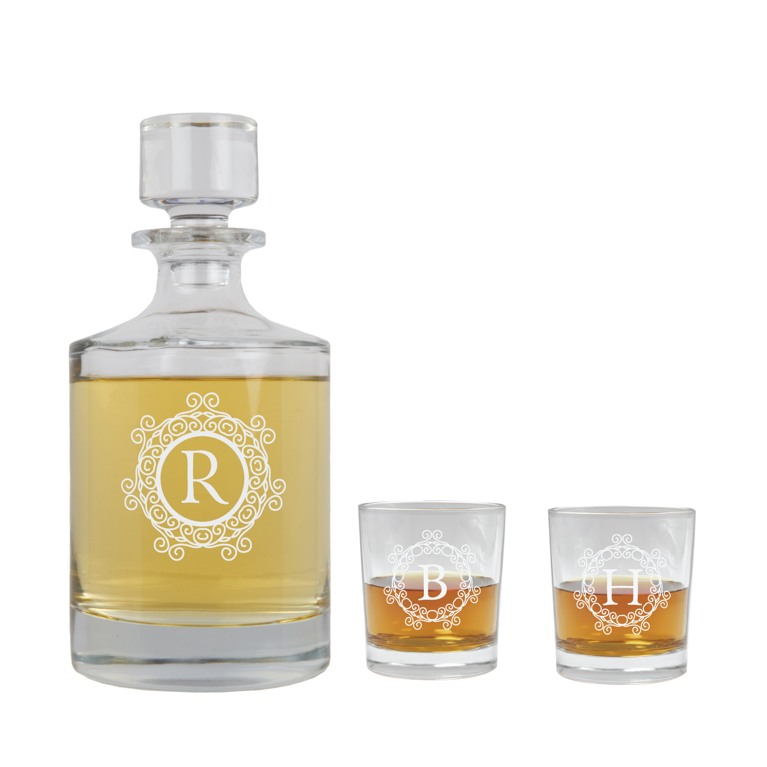 - Customizable with engraved initials on each glass and the decanter for a personalized touch