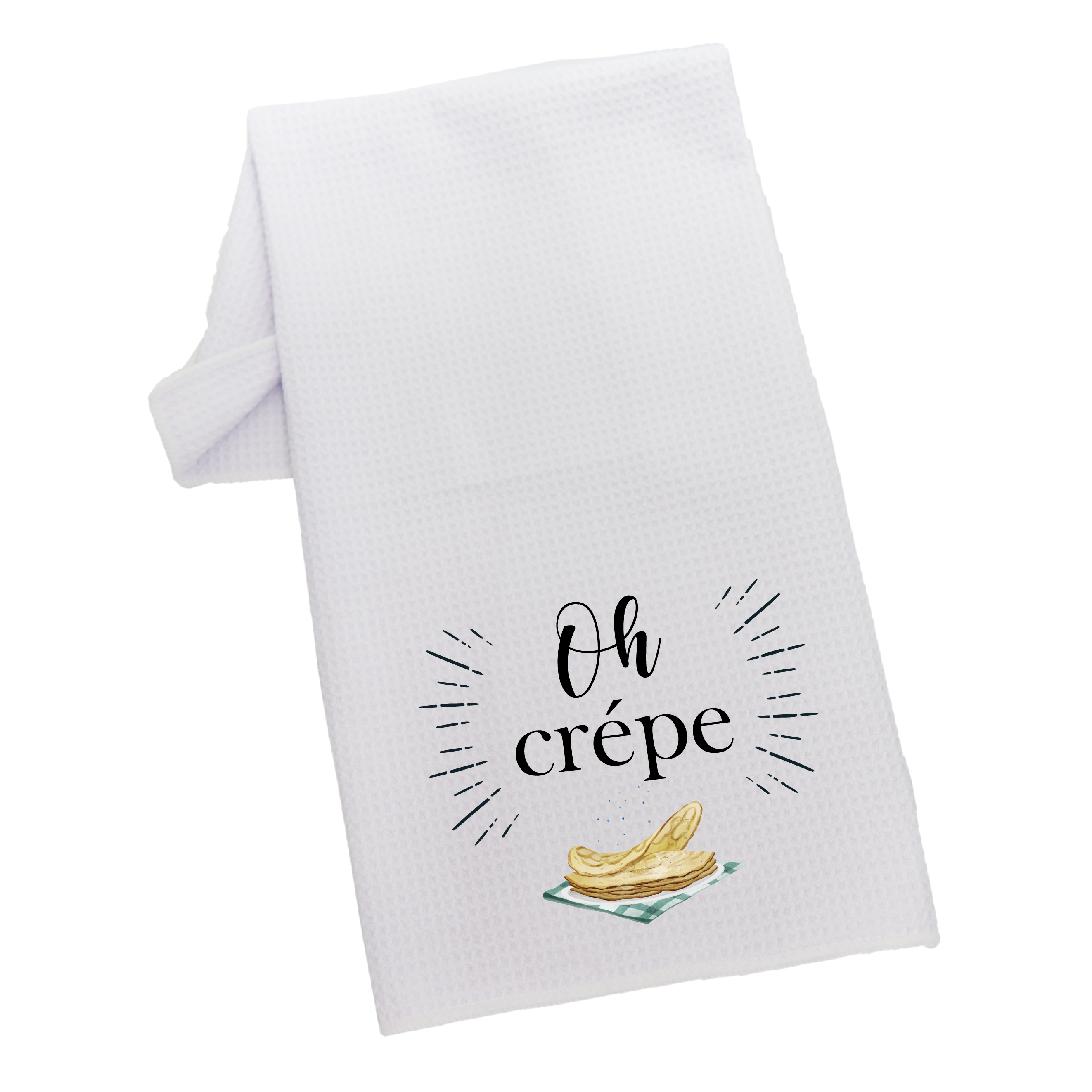 Personalized “Oh Crépe” Dish Towel | Custom Printed Waffle Weave Kitchen Towel | Funny Kitchen Gift