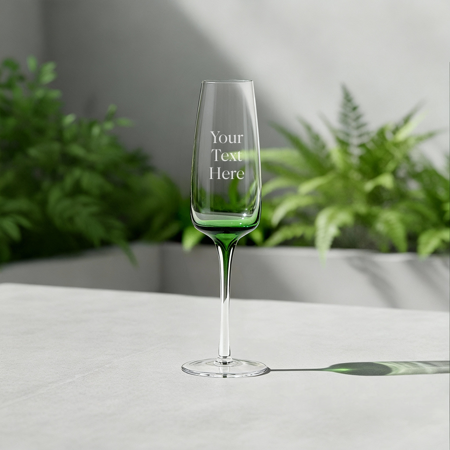 Raise a toast in style with our Personalized Emerald Flute Glass, expertly crafted from premium lead-free crystal. Each flute features a vibrant emerald-green stem that smoothly fades into the bowl, creating a subtle green tint that adds a refined, modern accent to any table or home bar.