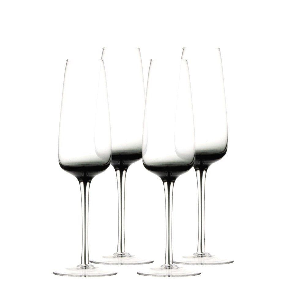 Premium lead-free crystal champagne flute with onyx-black stem fade