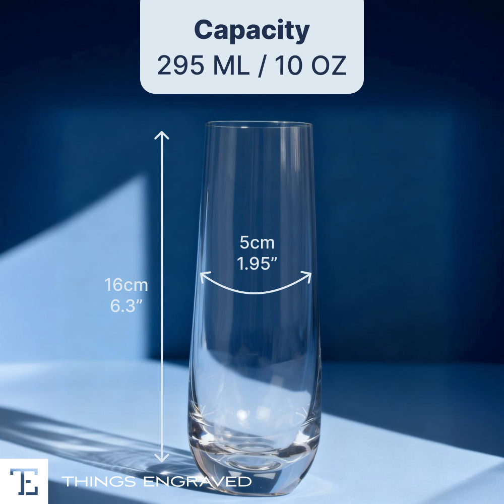 Custom Engraved Stemless Champagne 10oz Flute Glass – Personalized Wedding, Anniversary & Gift Glassware