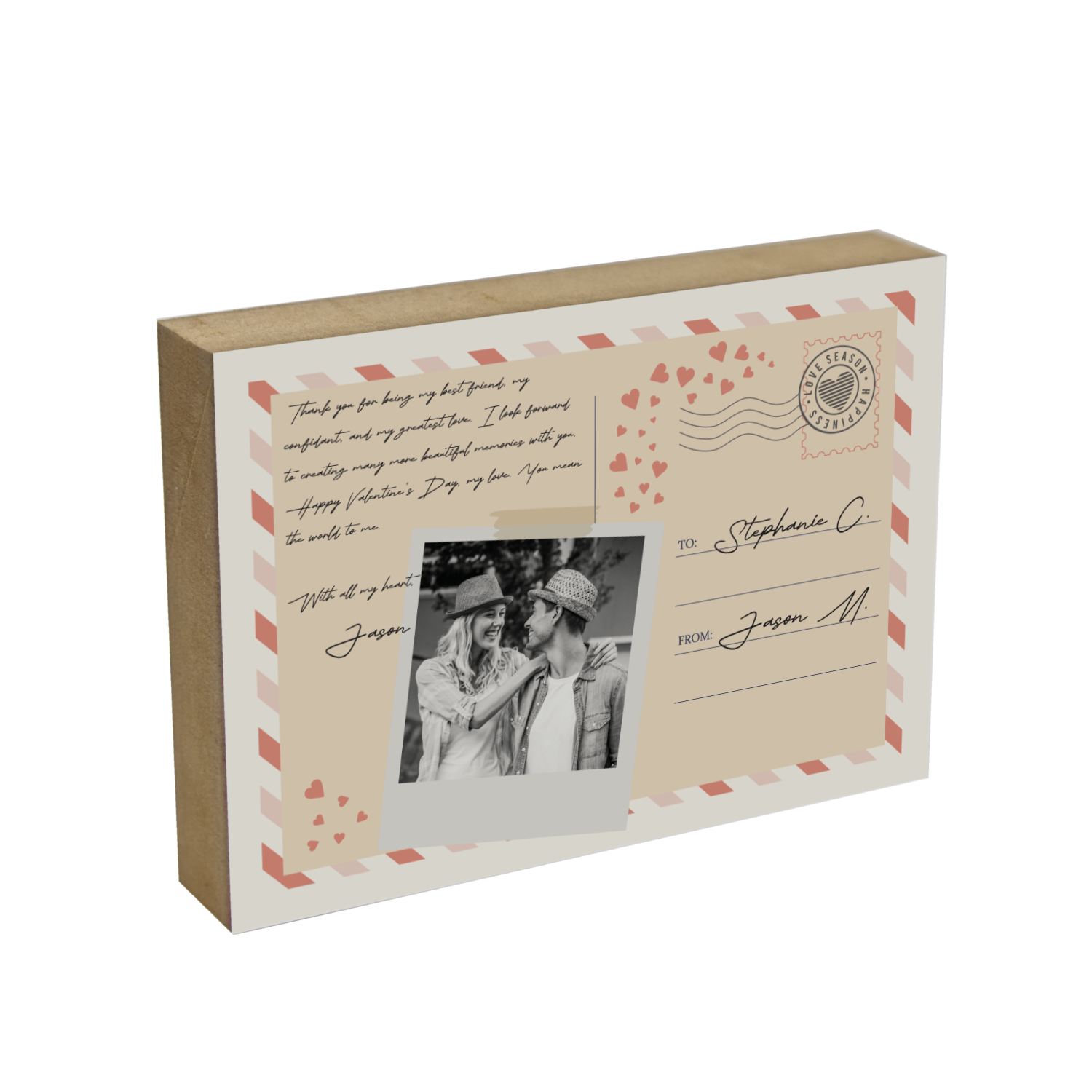 Transform your cherished memories into a timeless keepsake with this handwritten postcard picture block. Simply add your favorite photo to the fun polaroid-style frame and create a personalized treasure perfect for Valentine's Day gifting. This versatile photo block serves as a meaningful alternative to traditional cards or flowers, offering lasting sentimental value. Display it proudly on your wall, mantle, or office desk—wherever it brings a smile.