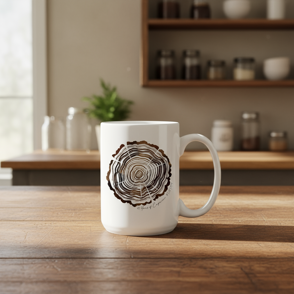 Personalized Wood Ring Birthday Mug | Custom 15oz Photo Mug | Upload Image, Design, or Message