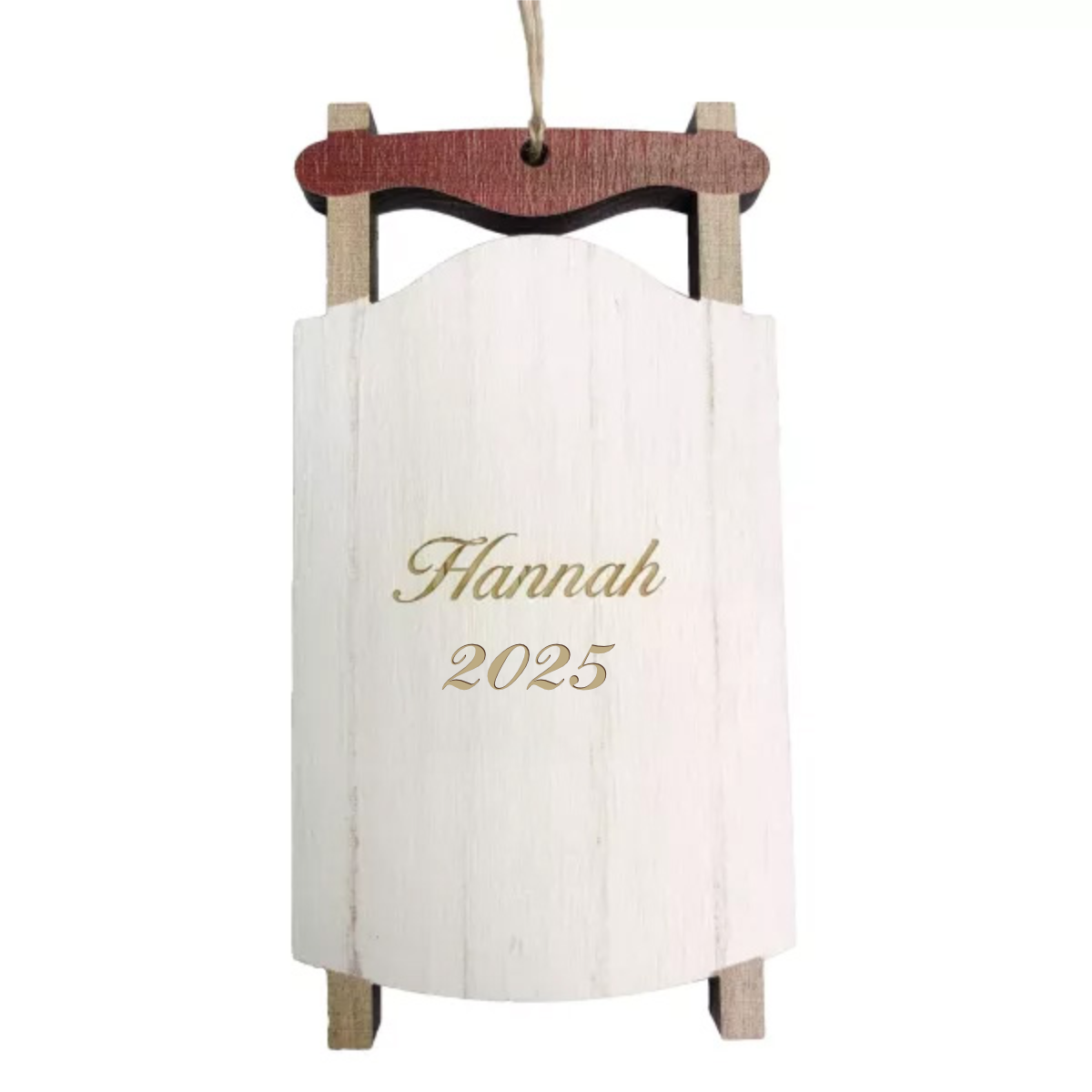 Personalized Wooden Sled Christmas Ornament – Custom Message, Text, Name